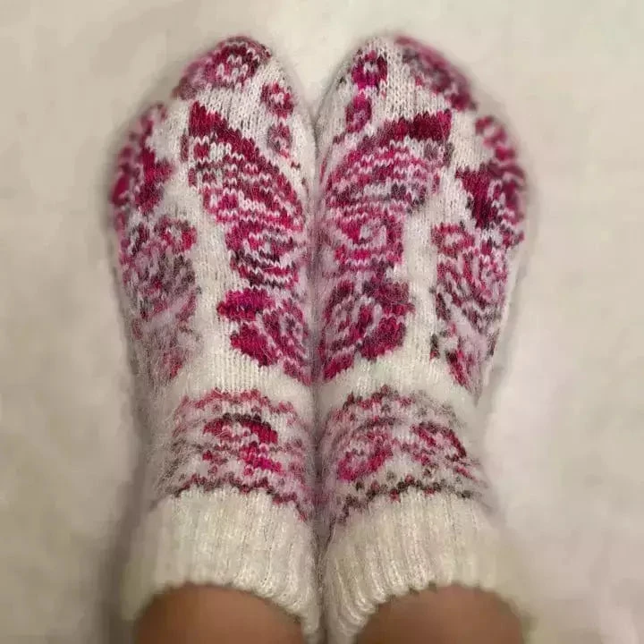 If you love butterflies, these socks are perfect for you. The bottoms of the socks are just as pretty as the tops with a pair of butterflies on the soles caressing your feet. Magic happens when you put your feet together, and the individual designs from each sock merge into one to create a beautiful butterfly surrounded by a magical rose garden. Just put them on and enjoy the view.